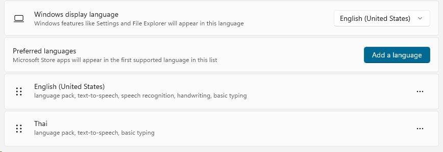 เข้าไปดูที่ Settings > Time & Language > Language & region แล้วดูว่ามีกี่ภาษา
